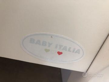 Vendo elegante culla Baby Italia in legno bianco, con dettagli a forma di cuore e ampio cassetto portaoggetti. Perfetta sia per maschietto che per femminuccia, la culla è solida, robusta. Inclusi materasso, copri materasso e lenzuola. Ruote piroettanti con freno per spostarla facilmente. Ideale per neonati e fino ai 4 anni. Prodotto Made in Italy di alta qualità.