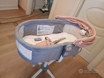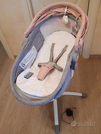 Culla (Bebe 2 luxe LOUNA) multifunzione suona melodie e gira per cullare si può regolare sia seduta poi una seduta più inclinata e culla, si regola l'altezza, come da foto varie regolazioni, compresa di scatolo e imballaggio, nella foto manca un pupazzetto pendente ma c'è, solo non presente in foto e nello scatolo.