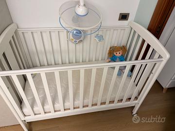 Culla bambini con materasso, cassetto contenitore e giochino. Marca italbaby.