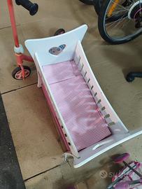 culla in legno per bambole Reborn, regalo monopattino e passeggino.