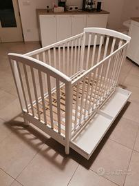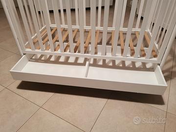 Culla bianca in legno regolabile e cassetto