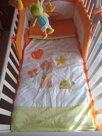 Vendo culla "Billo e pallina" colore bianco, completa di paracolpi, materasso, cuscino, piumone, federa cuscino, giostrina,