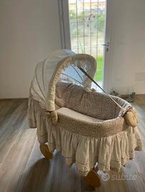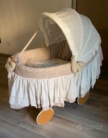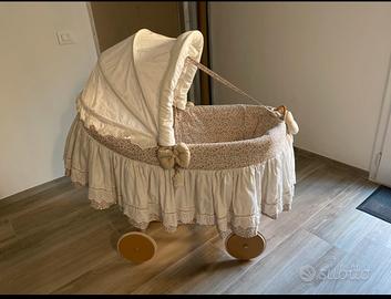 Bellissima culla in legno , compresa di paracolpi e piumino .