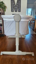 Due tasti posti sulla struttura laterale consentono di regolare fino a 6 posizioni l’altezza della culla. A partire da 33,5 cm e sino a 49,5 cm si potrà adeguare l’altezza al letto.