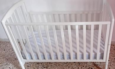 Cedo culla, foppapedretti, usata pochissimo. Con materasso e doghe in legno. Alzata laterale di sicurezza. Con ruote.