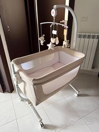 Vendo culla Cam modello Cullami in ottimo stato. Colore beige, inclusa giostrina. Tessuto in cotone sfoderabile e lavabile. 8 altezze, funzione dondolo, apertura laterale con cerniera. Misure materasso 85 x 50 x 3 cm. No perditempo.