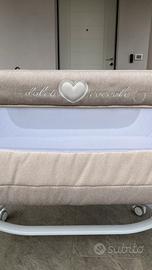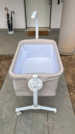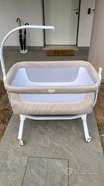 Culla multifunzione, utilizzabile per next to me, inclinabile, gancio appendi giostrina. 4 ruote 360° ognuna con freno.