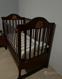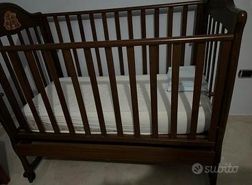 Culla per neonati con sbarre , materiale in legno marrone,compreso di materasso,nessuna imperfezione