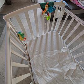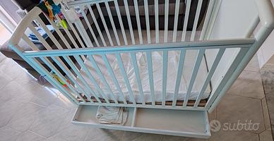 Culla e cassettiera ottime condizioni con materassino lampada led gioco e carillon. Cassettiera 3 cassetti con ruote mobili