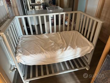 Vendo culla in legno massello di colore grigio, dal design moderno ed elegante, perfetta per arredare con stile la cameretta del tuo bambino. Solida, sicura e funzionale, ideale fin dai primi giorni di vita fino a 5 anni circa.