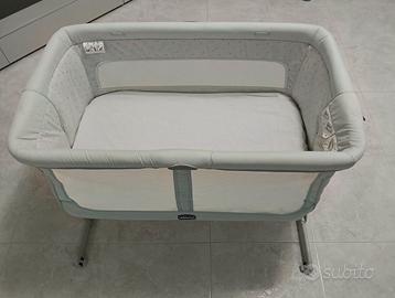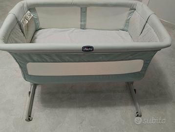 Culla Chicco Next to me dream. Colore celeste chiaro e grigio. Buone condizioni. Compresa anche di cinghie per attaccarla al letto e custodia per fodera e materassino.