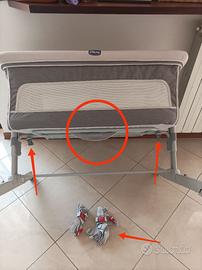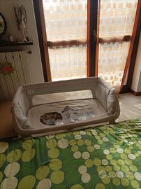 Culla che consente di posizionarla a fianco Letto per Cosleeping. Si aggancia comodamente al letto tramite cinghie (vedi frecce foto allegate).