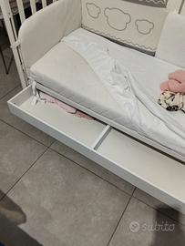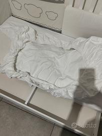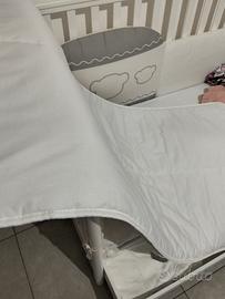 Compreso nel prezzo due paracolpi, piumino con 2 copripiumini, coprimaterasso e un set lenzuola.