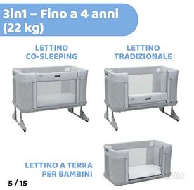 Vendo come nuova culla next to me della chicco max. Usata pochissime volte forse un mesetto che purtroppo non è stato mai abituato in culla mio figlio, per cui dormiva sempre nel lettone. La culla è accessoriata di tutto compreso materassino, molto comoda da attaccare al lettone e diventa anche box, si può regolare come vuoi te. La culla è già tutta smontata e confezionata per cui non ho immagini allegate ma è nuova mai usata, di colore grigio chiaro. Ritiro in posto.