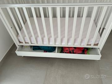 Culla Coccolissimi con cassetto nuova mai utilizzata con materasso in aloe , paracolpi, piumone, sacco copripiumino, e lenzuolo tutto abbinato e mai utilizzati