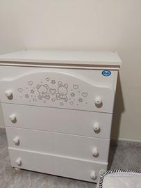 vendo anche separatamente culla completa di materasso quasi nuova usata pochissimo. fasciatoio 4 casetti con vaschetta per bagnetto.vendesi anche separatamente