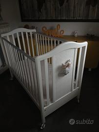 La culla è in legno laccato con vernice atossica a base di acqua.