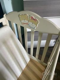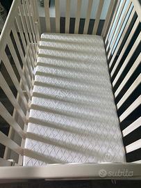 Culla in legno bianco come nuova con cassettone sottostante, comprensivo di materasso in memory e copri materasso anti acaro