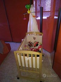 È comodissima e funzionale, perché ha le rotelle per potersi spostare da una stanza all'altra, e quest'ultime sono pieghevoli con bloccaggio e la culla diventa una culla a dondolo, per un dolce dondolio del vostro bebè.