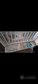 Culla lettino della foppapedretti modello Lovely con sponda regolabile a due altezze per facilitare il riordino del lettino che puo essere abbassata a scomparsa per trasformarla a versione a divanetto.rete regolabile a due altezze per facilitare quando il bimbo è neonato.forme arrotondate con legno in bianco e grigio.cassetto inferiore apribile a due scomparti dove riporre lenzuola coperte ecc.ruote gommate antigraffio con sistema frenante e di bloccaggio per spostarla facilmente.Tutto made in italy in più vi regalo MATERASSO ARTIGIANALE ANALLERGICO SU MISURA IN MEMORY FORM+PARACOLPI BIANCO+LENZUOLA+SET TESSILE IN AZZURRO set tessile in azzurro COMPOSTO DA TRAPUNTINO COPRITRAPUNTINO E PARACOLIPI.