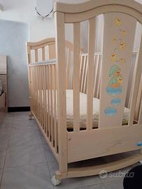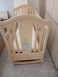 Culla neonato color sabbia compresa di cassettone sottostante e materasso. Possibilità di renderla a dondolo