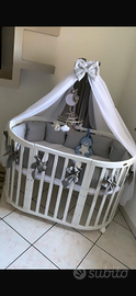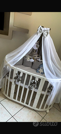 Vendo culla evolutiva SmartGrow 7-in-1 Comfort Baby da 0-10 anni, COME NUOVA, completa di: * materasso evolutivo 3 pz * struttura baldacchino (con velo) * ruote * paracolpi * set lenzuola (coprimaterasso,lenzuolo con angoli, lenzuolo superiore, piumino e copripiumino) Dimensioni culla tonda: 78*78*85 cm Dimensioni culla ovale: 129*78*85 cm Tutto in due varianti color bianco e tortora …invece per la culla tonda azzurro a pois Culla evolutiva a 5 altezze con possibilità di trasformazione in box, lettino, fasciatoio, tavolo con poltroncine. Su richiesta, invio altre foto. Maggiori informazioni e immagini sulla scheda tecnica in foto e sul sito Comfort Baby. Pagata €932 , vendo a € 350 …allego ricevuta