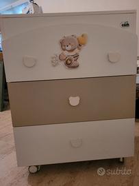 Vendo per cessato utilizzo i seguenti articoli, tutti assieme o singolarmente: fasciatoio e culla, abbinati della CAM, in perfette condizioni, solo la culla ha subito una riparazione in un punto, ma ora è perfettamente integra e completa di materasso; -culletta neonatale completa di materassino e paracolpi; -seggiolone CAM -ovetto e navicella, con gambe utilizzabili con entrambe, di trio CAM, praticamente non abbiamo più solo il passeggino; -girello multiuso, trasformabile in primi passi e poi in macchinina. Niente di rosa e di blu, tutto molto neutro.