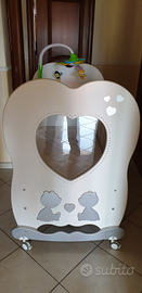 Lettino baby expert CUORE DI MAMMA bianco/argento è concepito per le mamme più esigenti che desiderano donare al proprio bimbo un nido unico, prezioso e confortevole. Un lettino dalla forma particolare e ricercata impreziosita dal grande oblò centrale incorniciato da preziosi swarovski , e due orsetti dal sorriso dolce e spensierato decorati anch'essi da preziosi swarovschi. Massima serietà.