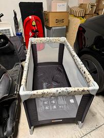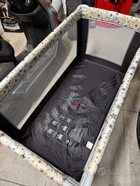 Pratica culla da campeggio per neonati, ideale per viaggi o riposini. - Tessuto a rete traspirante sui lati. - Bordi imbottiti con fantasia a stelle. - Struttura pieghevole per un facile trasporto.