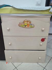 Usato ma ancora fruibile, REGALO culla (io ho tolto le ruote per renderla più stabile), fasciatoio a 3 cassetti con bagnetto integrato ma removibile. Marca Erbesi. Ritiro a mano a carico dell'acquirente.