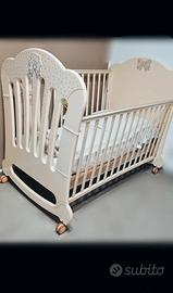 culla e fasciatoio in legno di buona marca con brillantini, completo di tutto