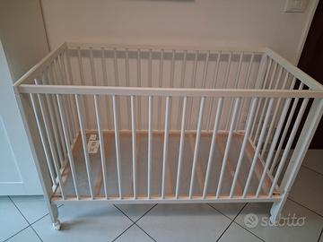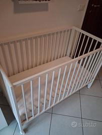 Culla Ikea, modello GULLIVER (prezzo attuale 119 euro) e materasso Ikea modello JÄTTETRÖTT 11 cm (prezzo attuale 99 euro) completo di proteggi materasso impermeabile. Culla in ottime condizioni, sono state anche applicate 4 rotelle con blocchi (si posso togliere volendo). Materasso come nuovo, nessuna macchia da entrambi i lati, sia alla schiuma che al coprimaterasso, inoltre presente anche il proteggi materasso impermeabile.