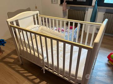 Vendo culla in legno marca pali,tenuta molto bene come nuova, con sponde e fondo regolabili in altezza ,munitabdi cassettone porta biancheria ,completa il tutto anche un materasso anallergico e antibatterico,sfoderabile e lavabile