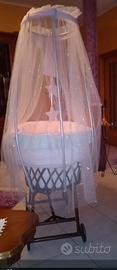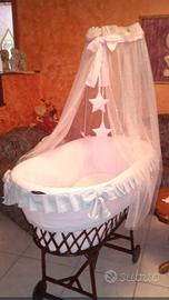 Meravigliosa ed elegante cesta/ culletta per neonati... realizzata interamente a mano con stoffa 100% cotone....rosa delicato e grigio a pois bianchi e stupendo velo glitterato ....per altre info o foto non esitate a contattarmi.