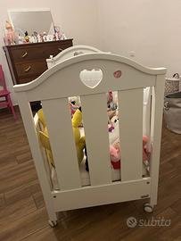 Culla erbesi come nuova di colore bianca, ancora completa di paracolpi. Utilizzata pochissime volte. Completa di tutti gli accessori, trasportabile su ruote.