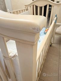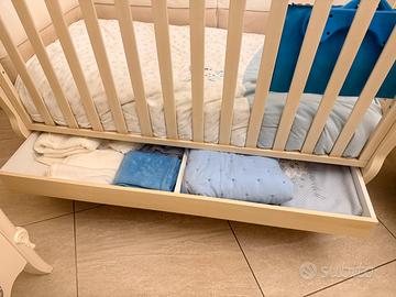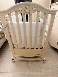 Vendo culla erbesi linea orsetto in ottime condizioni. Dotata di un cassetto riponi biancheria, rete con doghe e sbarra da un lato regolabile con due altezze. Completa di materasso in buone condizioni , paracolpi, coperta in completo paracolpi + imbottitura invernale coperta . Regalo anche qualche copertina di colore azzurro. NB: come da foto la culla presenta alcune scrostature della vernice sugli spigoli dovute a urti da movimentazione; questi comunque sia non incidono sull immagine complessiva della culla stessa. Ritiro a vistro carico nei pressi di auchan giugliano in campania. No perditempo… contattatemi solo se siete interessati