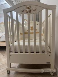 Culla nuovissima senza nessun segno di usura, nemmeno un graffio, completa di paracolpi laterale erbesi, materasso , e copriletto erbesi coordinato , tutto perfetto, ditta erbesi, colore avorio, modello tippy joly, posso anche spedire , ma preferisco ritiro a mano.