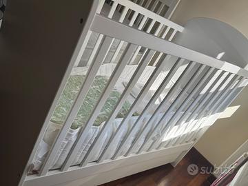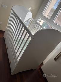 Mai usato. Solo montato . Ha due altezze, si può togliere una sbarra e si trasforma in lettino. Ha anche un comodo cassetto con ruote