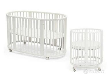 Vendo Stokke Sleepi colore bianco, completa di kit per doppia misura e 2 materassi originali inclusi (sia per versione piccola che per versione grande) entrambi i materassi in ottimo stato e senza macchie.
