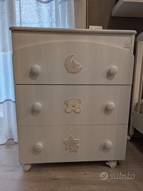 Il lettino Teddy è dotato di: sponde rivestite con guaina gengivale, spigoli arrotondati per garantire massima sicurezza, ampio e comodo cassetto, ruote piroettanti di cui due con freno.