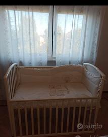 Culla, fasciatoio, paracolpi, lenzuolo pali