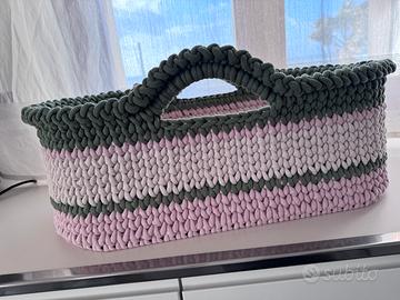 Culla realizzata a mano con cordincino in cotone bobbiny jumbo 9 mm in cotone misure 70x35 relizzabile in qualsiasi colore a scelta e con targhettina nome personalizzato , su richiesta si possono reluzzare fasciatoio e cestini portaoggetti abbinati. La culla visne fornita completa di materassino
