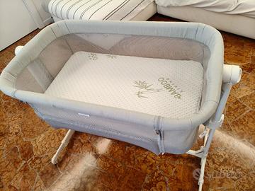 Culla fianco letto modello Brevi Nanna Oh. Usata pochissime volte ( il mio bimbo ha dormito praticamente sempre con me). CONDIZIONI OTTIME. colore grigio chiaro. vendo con custodia originale, comprensiva di cinghie d'aggancio. Comprensiva sia di elemento di irrigidimento e materassino originario, sia di materassino anti soffoco (spesso circa 6/7 cm) acquistato in aggiunta per rendere il lettino piú comodo ( valore 40 euro). Disponibile su richiesta parure copripiumino al costo di 10 euro. ritiro a Milano zona Gorla.