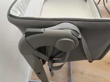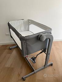 Culla Chicco Next2Me, colore grigio, in ottime condizioni. Completa di materasso originale e cinghie di fissaggio al letto.