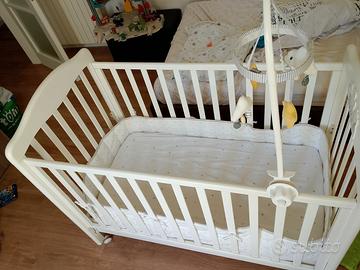 vendo culla come da foto con materasso, paracolpi, e Carillon. munita di cassettone la culla è in buone condizioni.