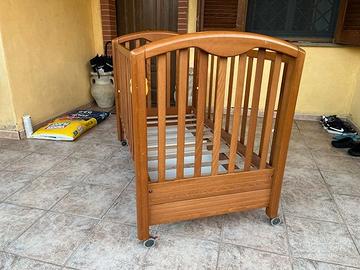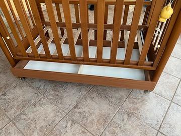culla con ante ribaltabili in buono stato generale- su alcune parti inferiori si è staccato il rivestimento (non visibile) ha un graffio su lato corto come in foto