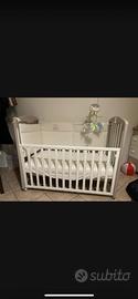 Culla Foppapedretti ben tenuta con 2 cassetti contenitore, paracolpi e materasso.
