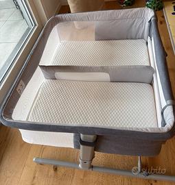 Chicco Next2Me Twins. Culla gemellare con 2 materassi, spondina apribile con una mano, 11 livelli di altezza e barrierina divisoria con inserti in rete. Ottime condizioni, pari al nuovo perché usata pochissimo. Regalo anche set lenzuolini sopra e sotto specifici fatti su misura. Prezzo trattabile.