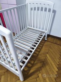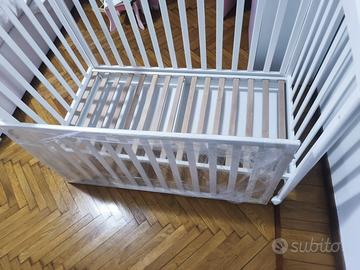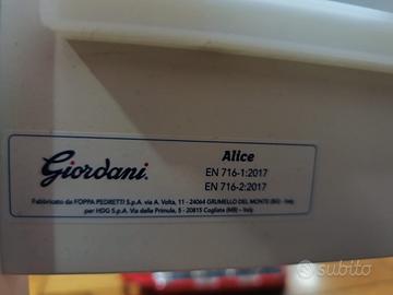 Vendo culla Della giordani. Un lettino dalle forme arrotondate con una solida struttura in legno bianco con una spondina regolabile in altezza con rete a doghe e nella parte inferiore un pratico cassetto estraebile il lettino e facilissimo da spostare grazie alla 4 ruote piroettanti due delle quali sono dotate di freno . Iil lettino e stato usato praticamente due volte il suo prezzo commerciale e 239 lo vendo a 150 leggermente trattabili