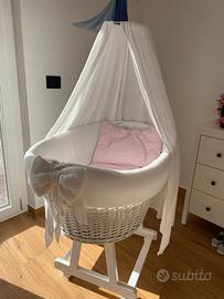Culla in vimini e tessuto come nuova usata pochissimo